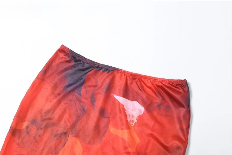 Stylish Print Two Piece Set – Satin Crop Top and Maxi Skirt