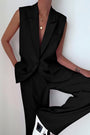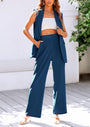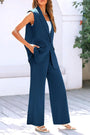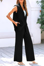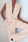 - Features: Sleek sleeveless blazer vest with lapel collar and matching wide-leg pants