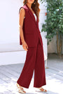 Stylish Two Piece Suit Set – Sleeveless Blazer Vest & Wide Leg Pants