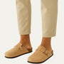 Made from soft beige suede and designed with a minimalist buckle, they slip on effortlessly—delivering comfort, composure, and just the right touch of refinement. Whether you’re stepping out for a countryside brunch or simply hosting at home, these clogs keep things elevated without trying too hard.