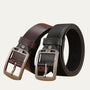 - Features: Bold brushed-metal buckle, tonal stitching, and vintage texture with subtle grain