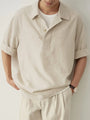 Crafted from a lightweight linen-blend, it’s designed to feel soft against the skin while keeping you effortlessly styled from morning coffee to evening strolls. Throw it on with tailored shorts, linen trousers, or jeans—no overthinking required.