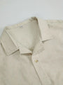 Features: Short sleeves, open spread collar, button-up front, classic beige “apricot” tone