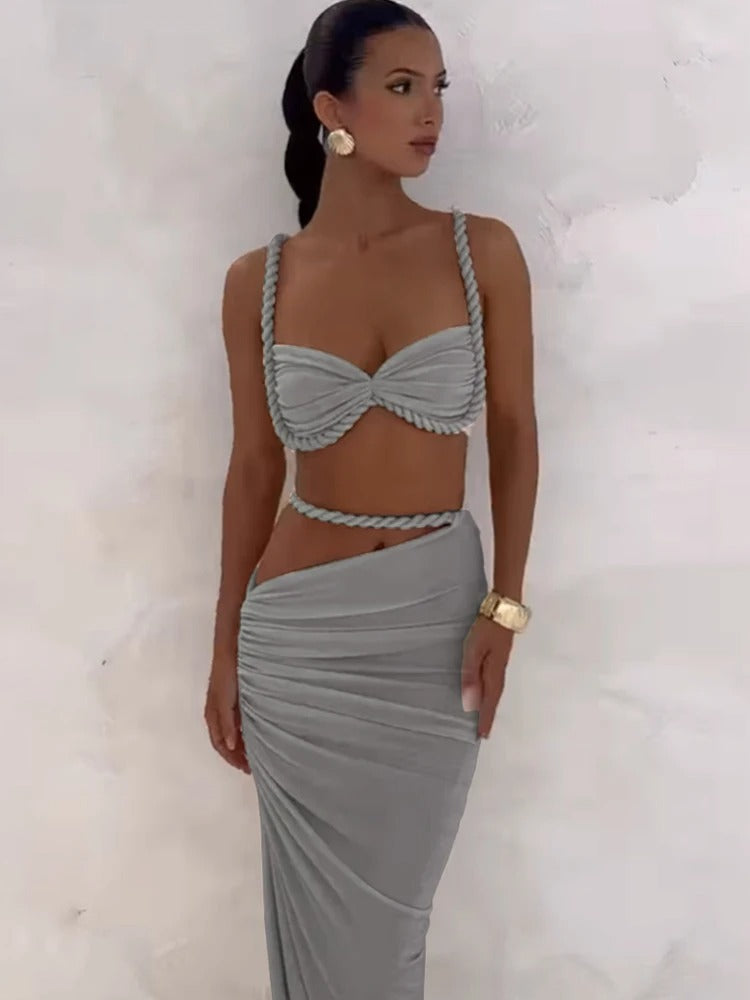 The figure-hugging maxi skirt drapes beautifully for a flattering silhouette, while the crop top’s cut-out design adds just the right amount of edge. Whether you’re at a beach party, on vacation, or out for a glamorous night, this set makes you look confident, radiant, and unforgettable without even trying.