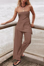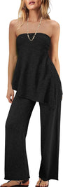 Trendy Two Piece Set – Strapless Knit Top & Wide Leg Pants