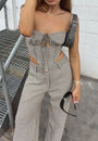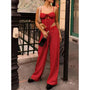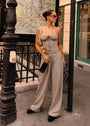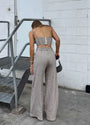 Two Piece Set – Bustier Crop Top & Wide Leg Pants Outfit