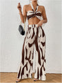 Own your look with the Two Piece Set, a stunning blend of chic design and effortless comfort. Featuring a figure-flattering halter crop top and flowing high-waisted pants, this eye-catching set combines modern fashion with laid-back elegance. The bold graphic print brings energy and confidence, making it perfect for vacations, rooftop parties, or stylish summer days when you want to stand out effortlessly.