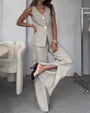 Two Piece Set – Sleeveless V Neck Vest & High Waist Wide Leg Pants