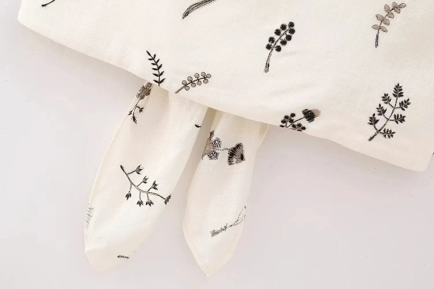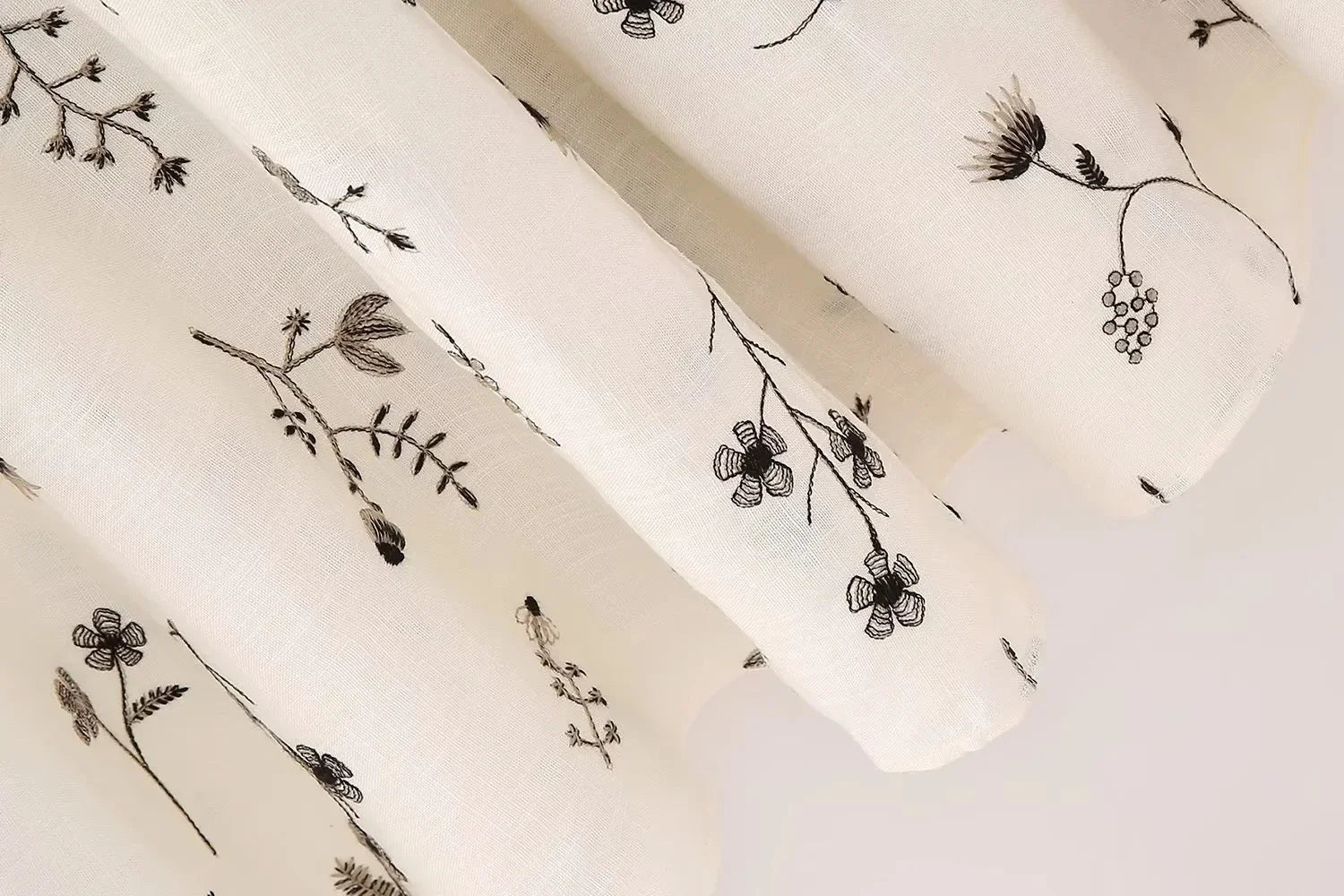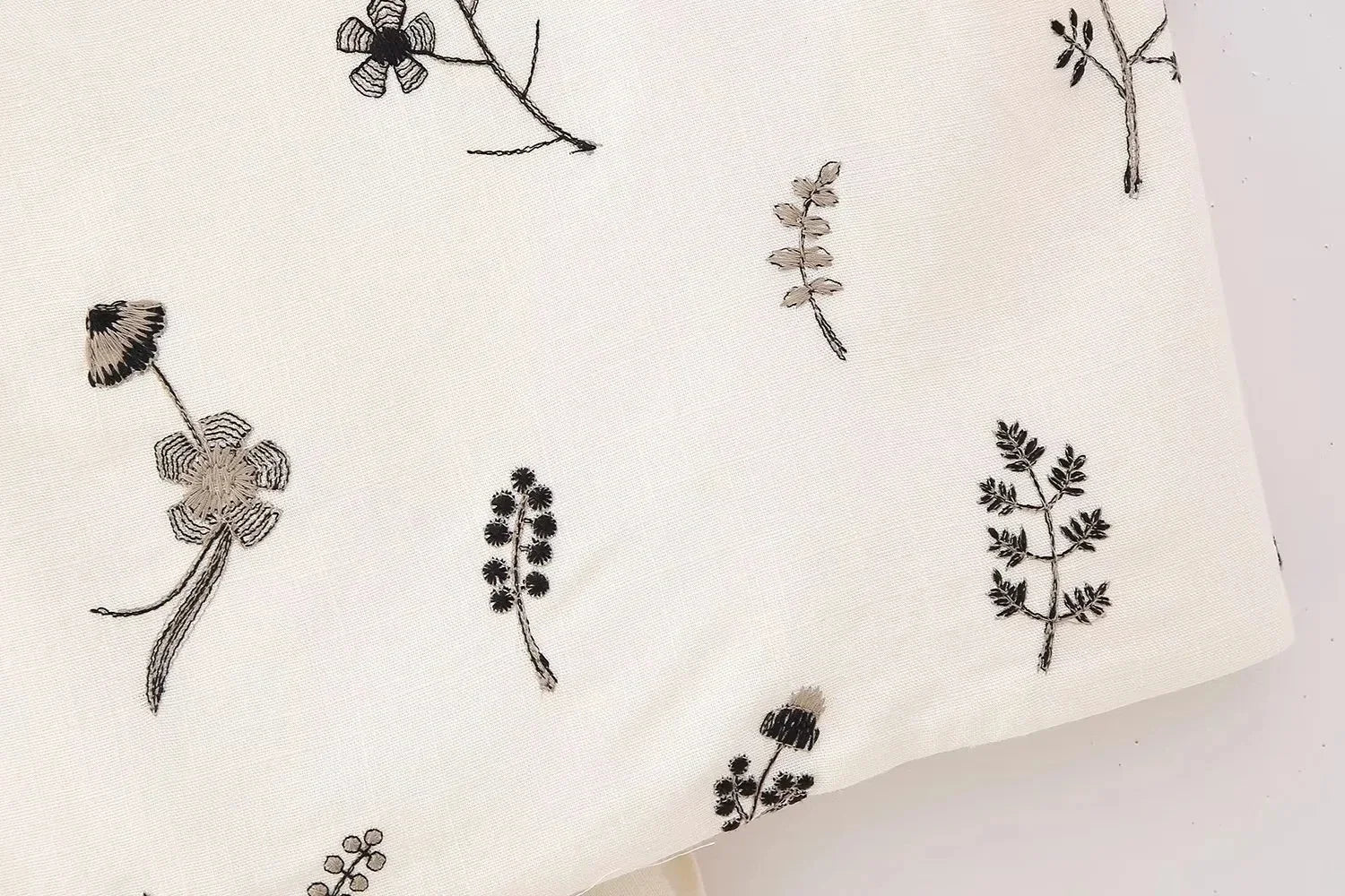 - Material: Soft, breathable cotton-blend fabric with delicate floral embroidery