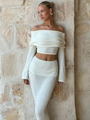 Stand out with ease in the White Knit Two Piece Set. Designed to balance comfort and sophistication, this coordinated set features a soft knit fabric, an elegant off-shoulder neckline, and a flattering figure-hugging skirt. Perfect for creating a head-turning look with minimal effort, this set lets you own the moment—whether at a party, a casual outing, or a chic dinner date. Pair with heels for glam nights or sandals for an easy daytime vibe.