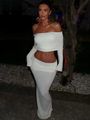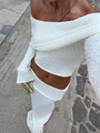 White Knit Two Piece Set – Off Shoulder Crop Top & Skirt
