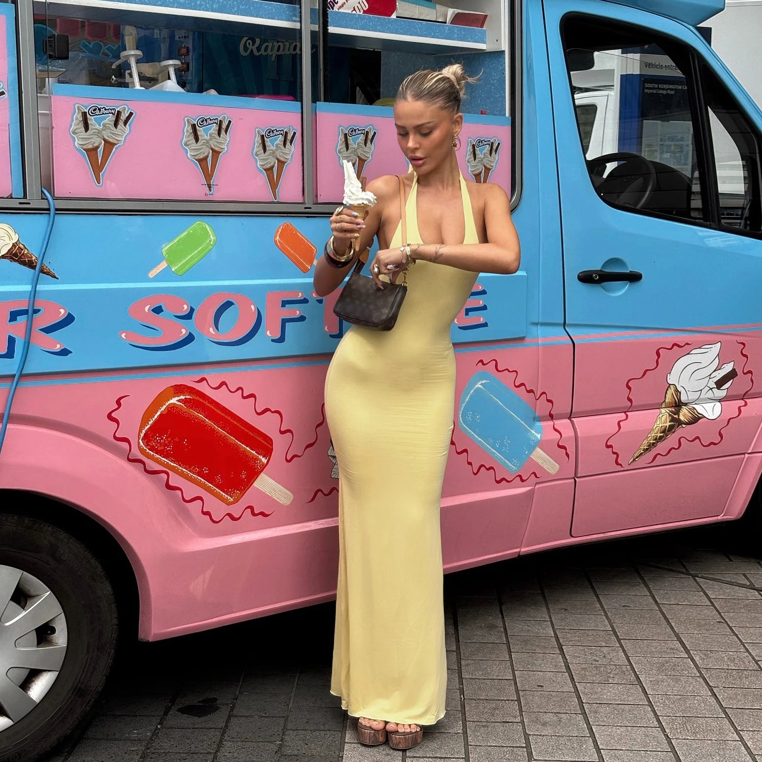 Yellow Halter Neck Maxi Dress – Sleeveless Slim Fit Summer Beachwear