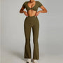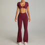 2 Piece Yoga Set – Short Sleeve Crop Top & Flared Leg Pants Gym Activewear