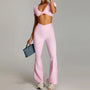 Forget the stress of mismatched outfits—this coordinated set offers a sleek crop top paired with flared pants that elongate your silhouette and move with you. Whether it’s yoga, pilates, the gym, or casual wear, this set delivers versatility and everyday confidence.